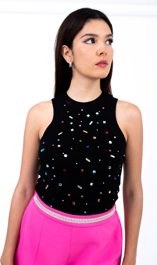 Blusa Bordada Brillos Cuello