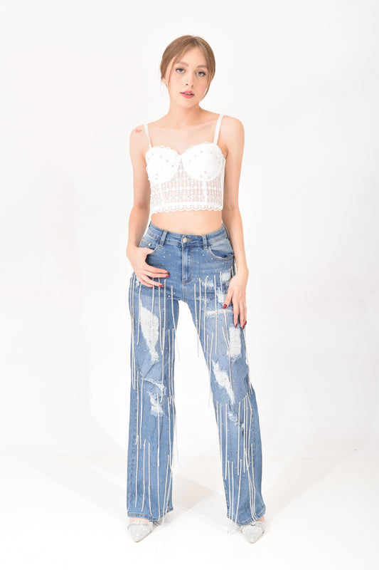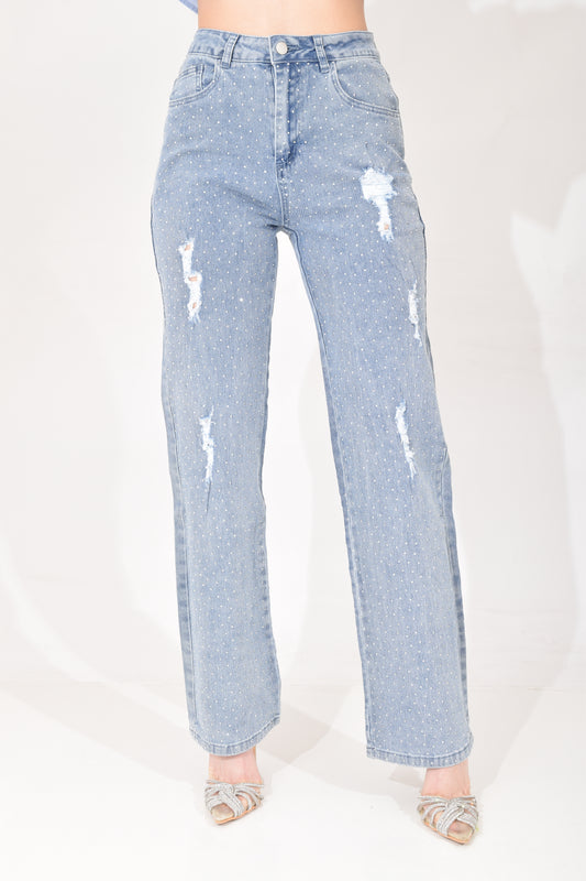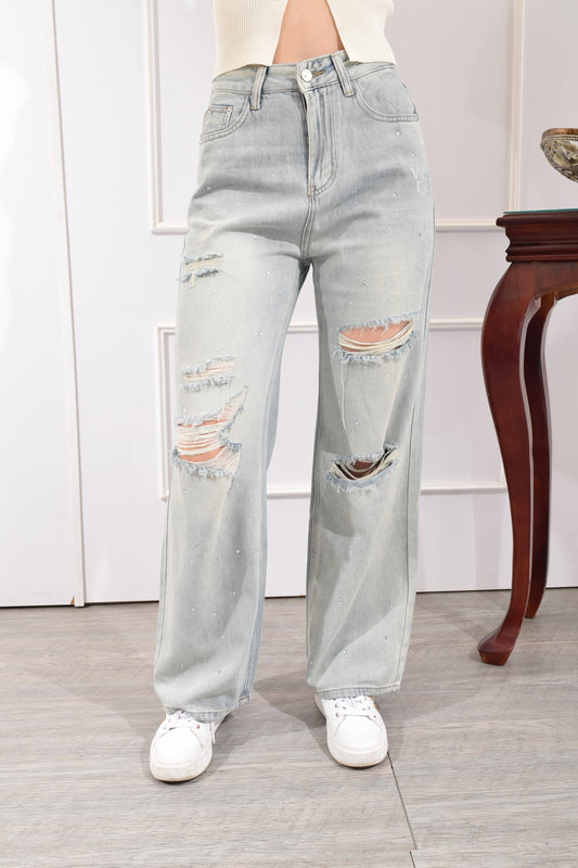 Pantalón Mezclilla Destrucción Brillos