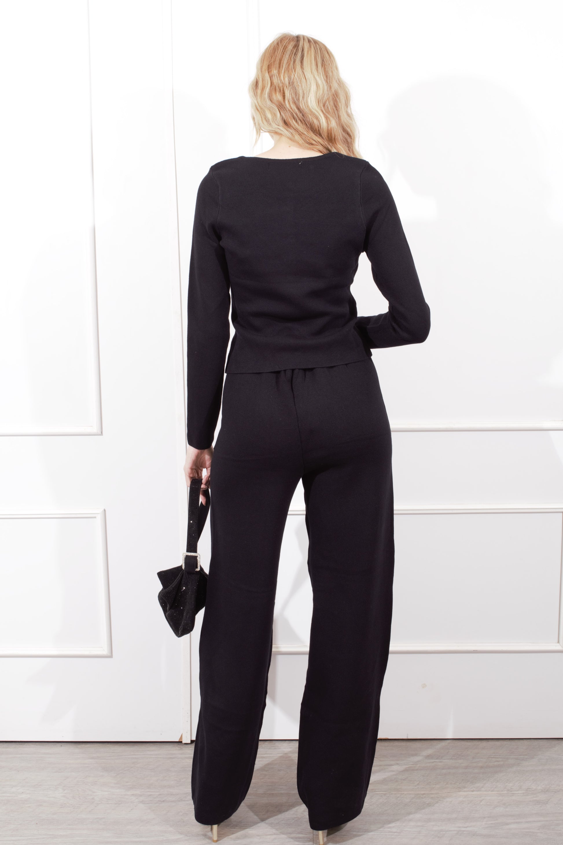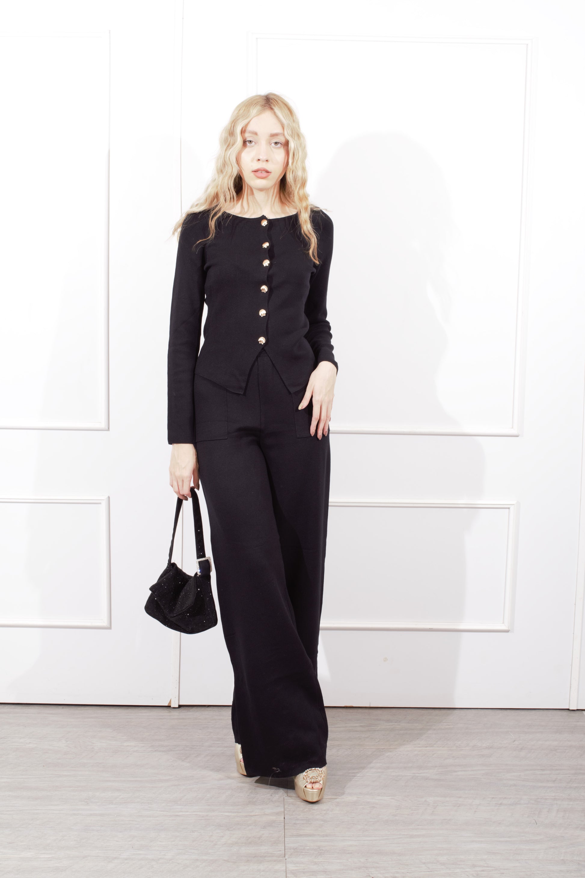 Conjunto tejido saco abierto con botones al frente, pantalón con bolsas frontales y resorte en la cintura, tejido suave con suficiente strech