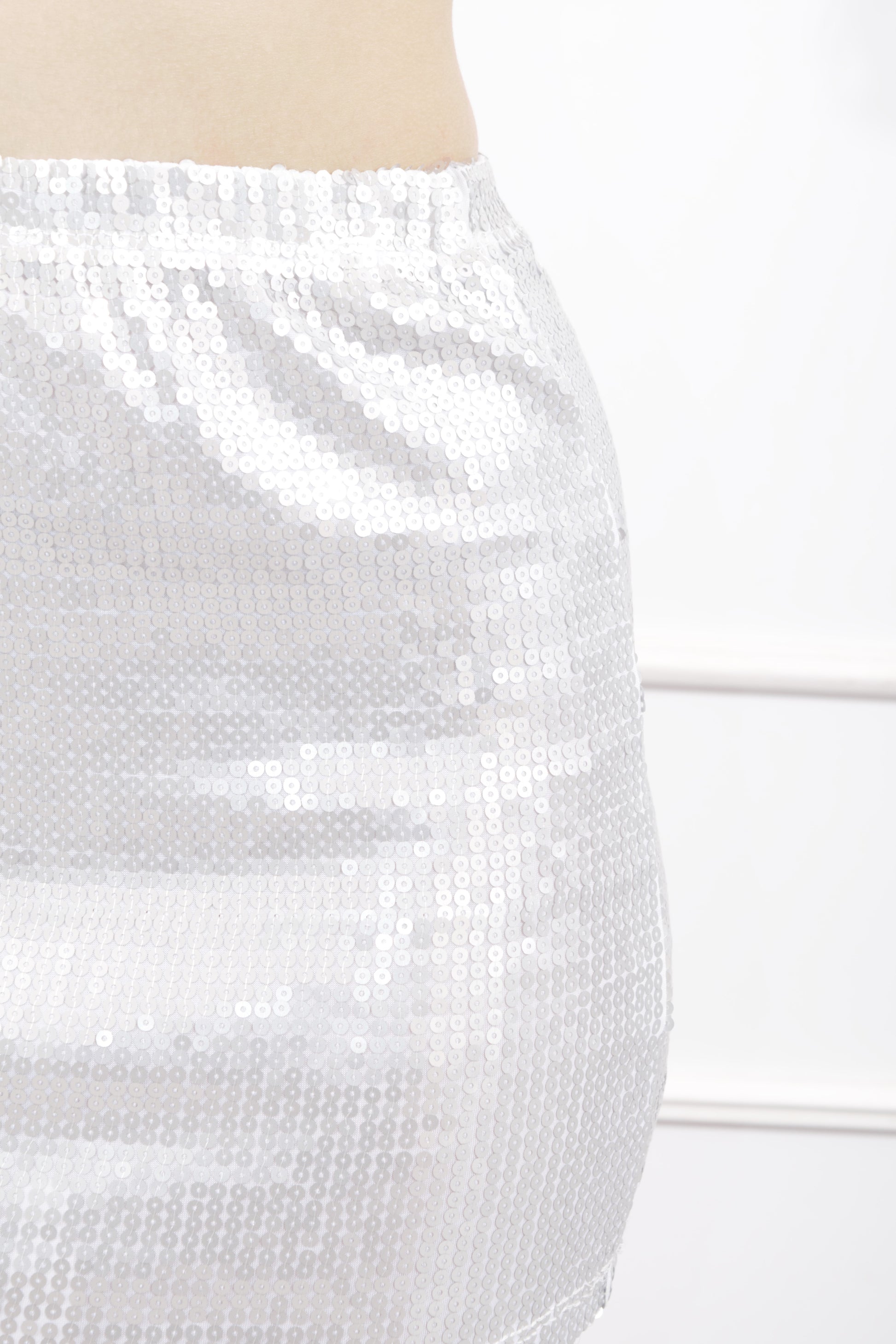 Falda corta, lentejuela totalmente cosida, resorte en la cintura, no tiene forro, material con suficiente strech.