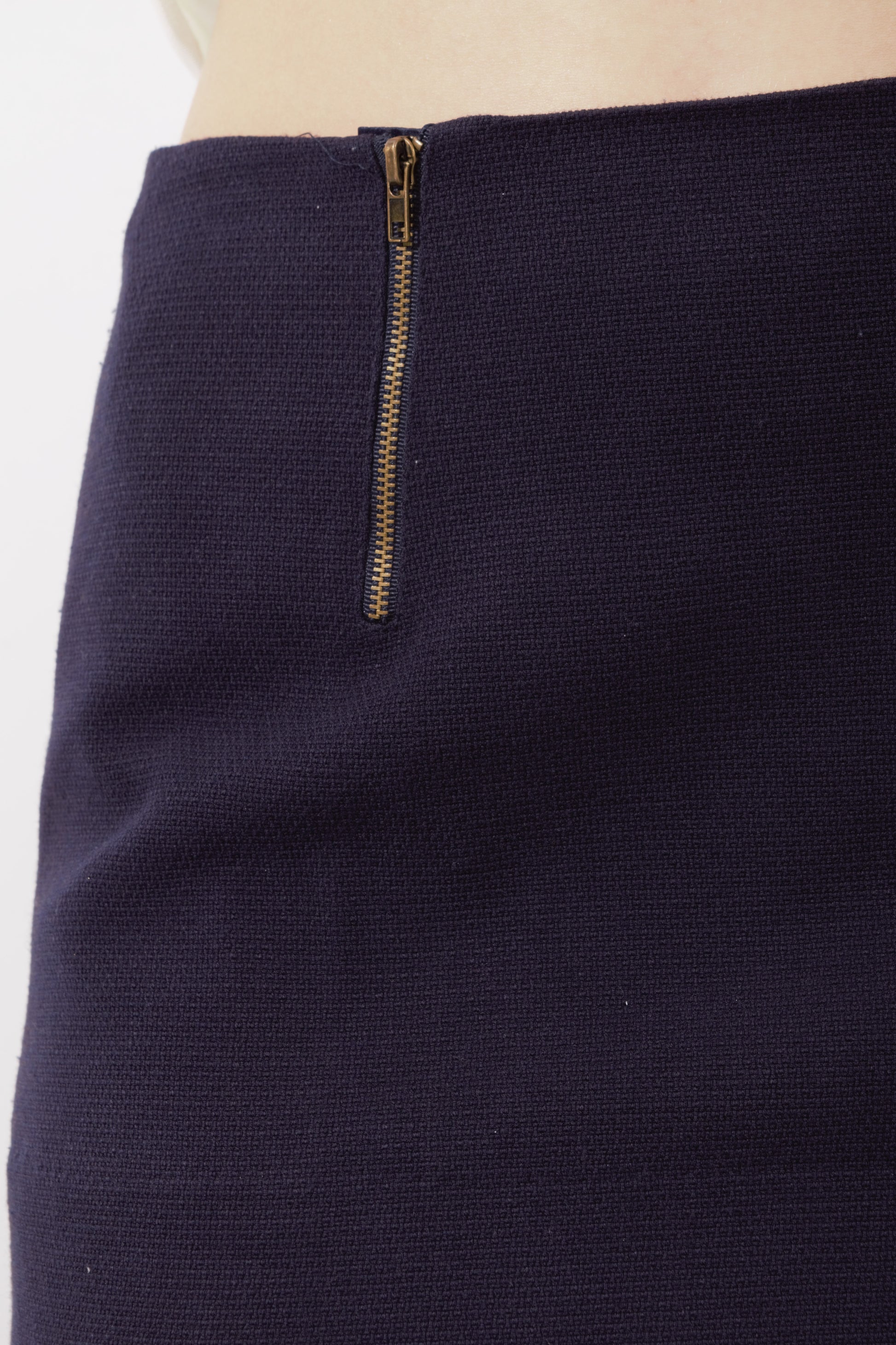 Falda corta cierres al frente, corte asimétrico un poco mas largo parte trasera, tela muy suave, con forro, no estira.