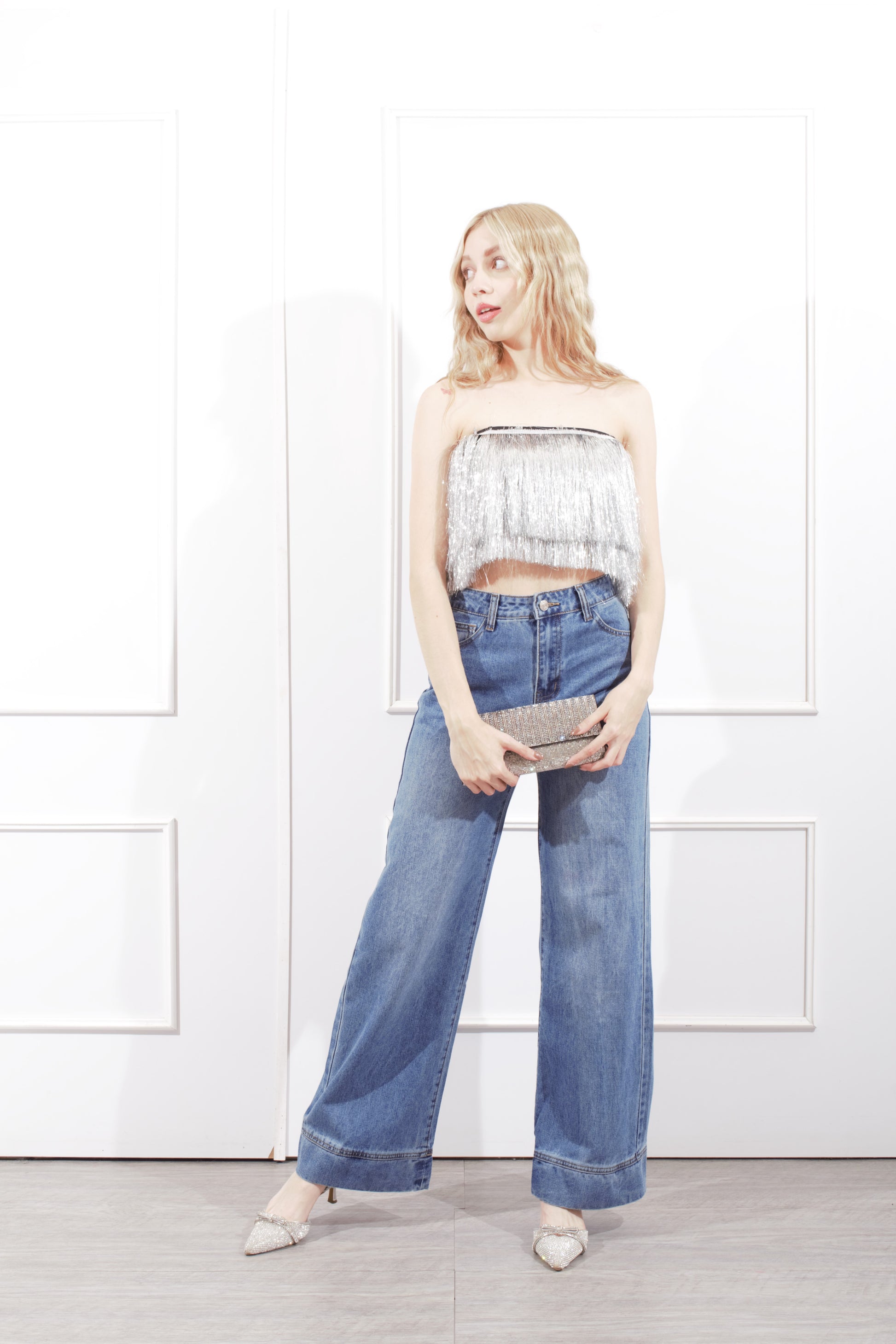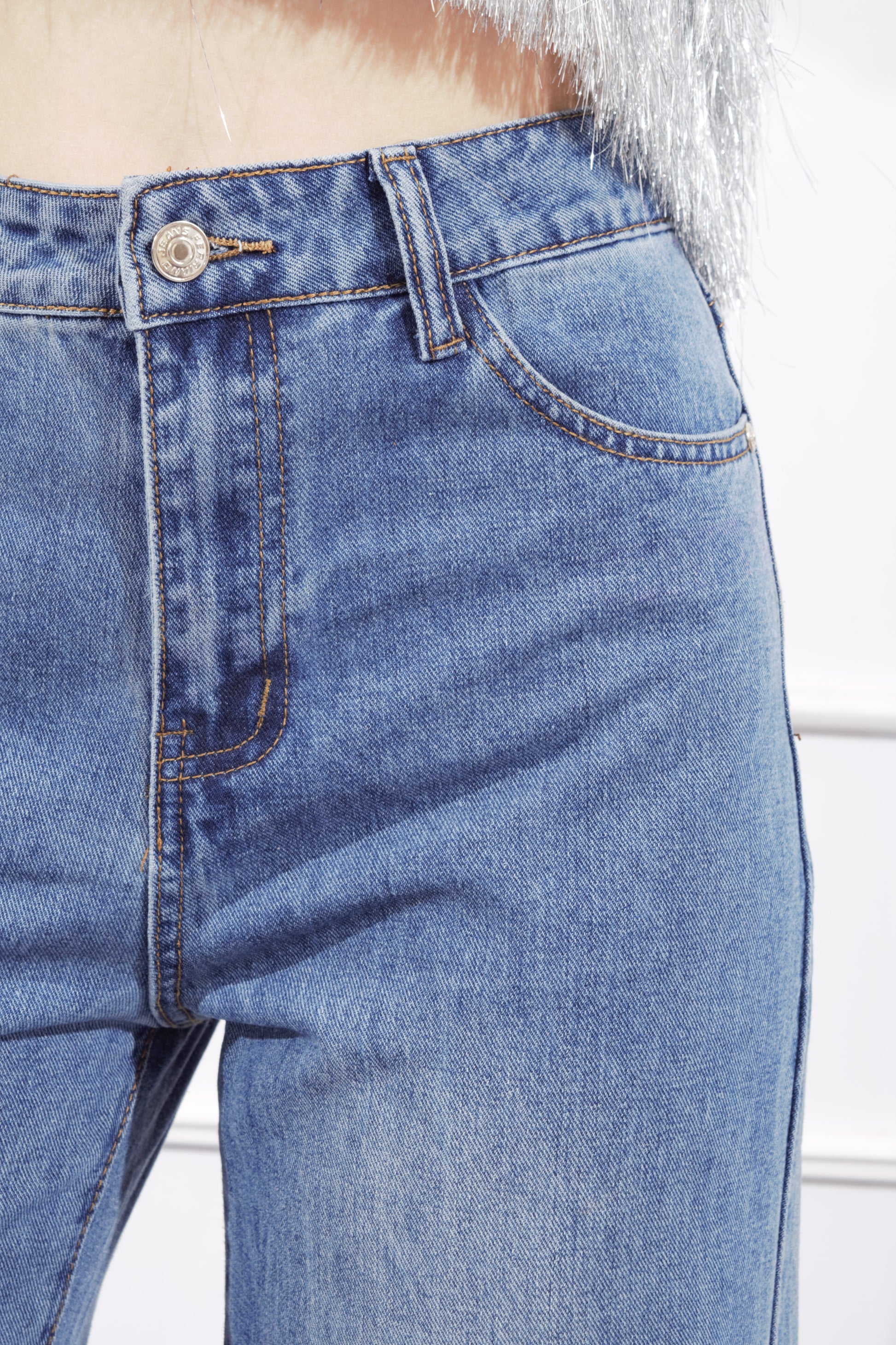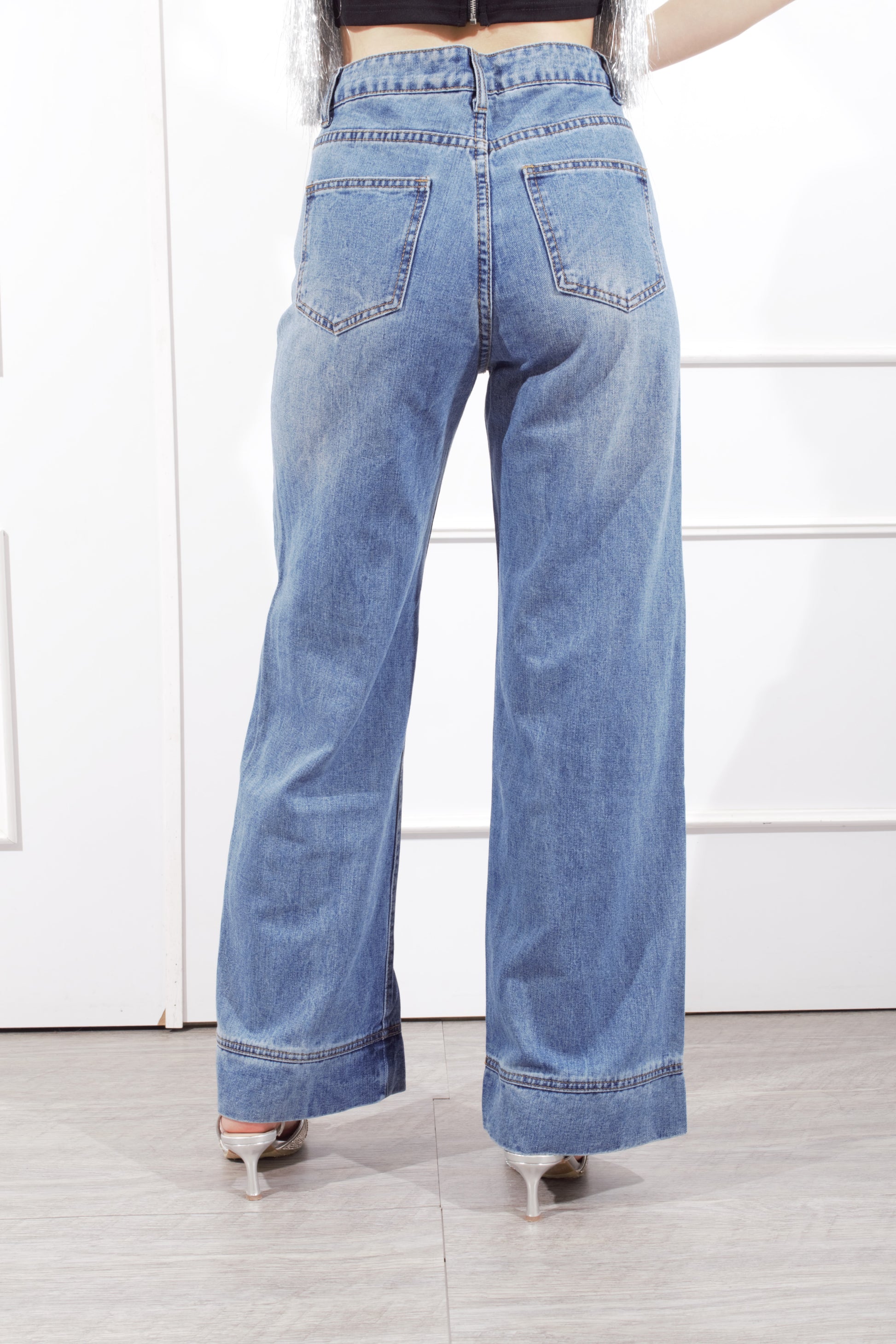 Pantalón mezclilla amplio, cintura alta tela suave con un muy poco strech