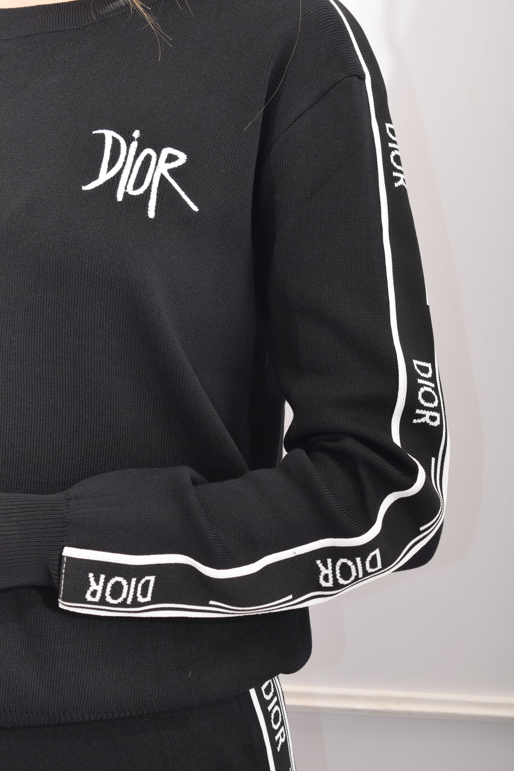 Conjunto tejido cuello redondo letras mangas, pantalón resorte cintura, no tiene bolsas, letras costados, material con suficiente strech.