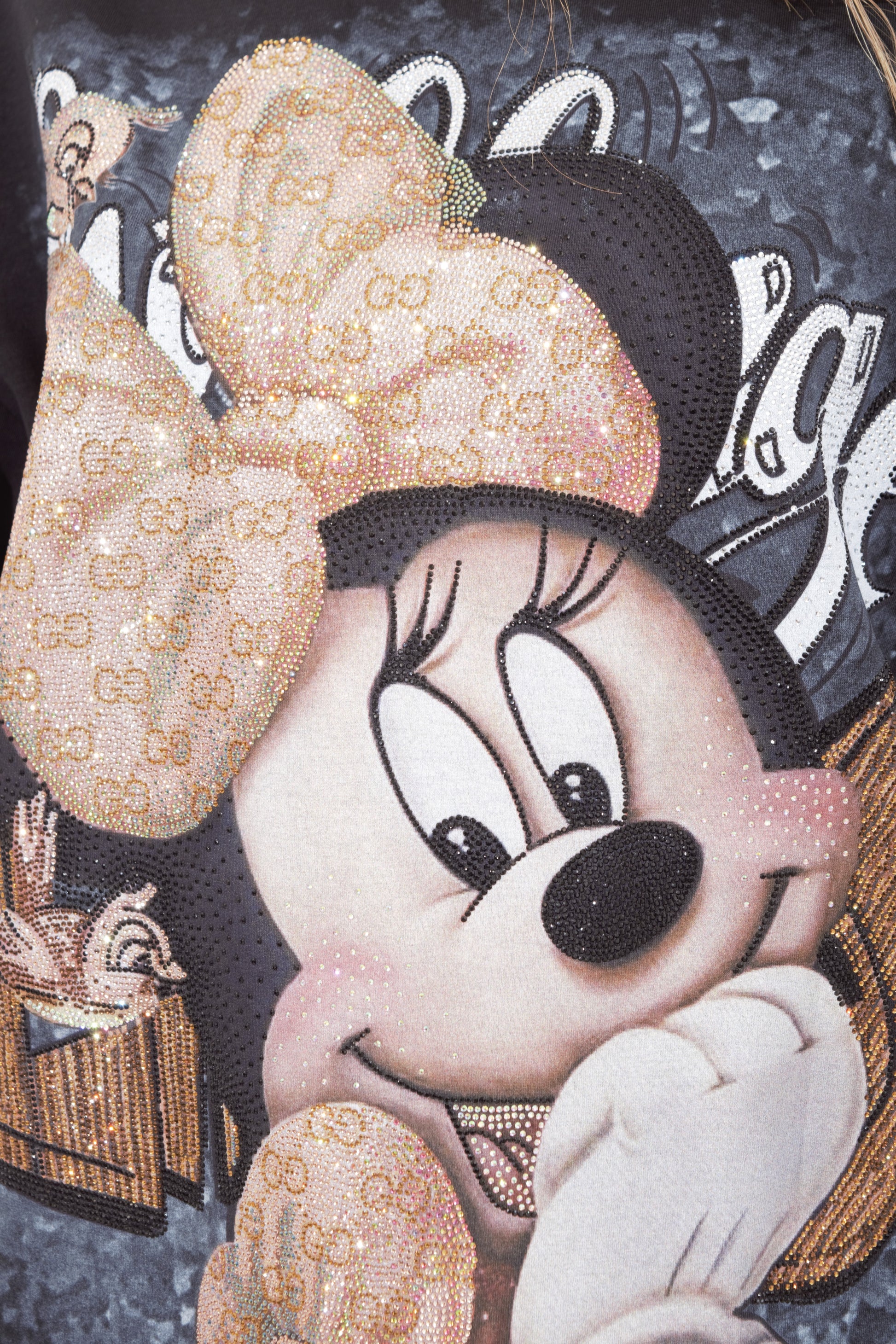 Playera ratón brillos, cuello redondo, manga corta, tela suave con suficiente strech