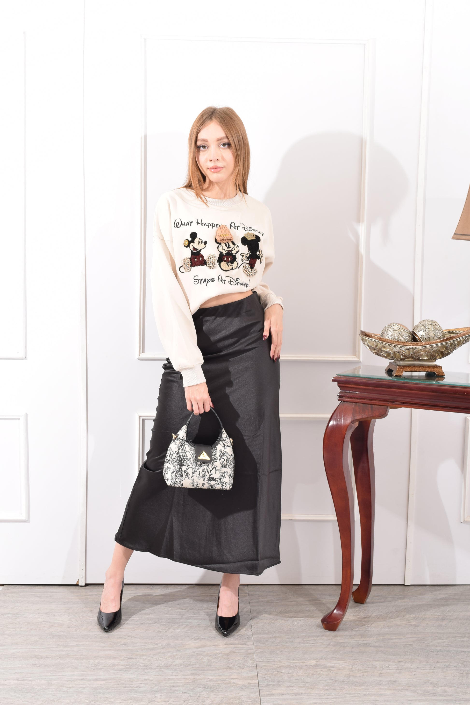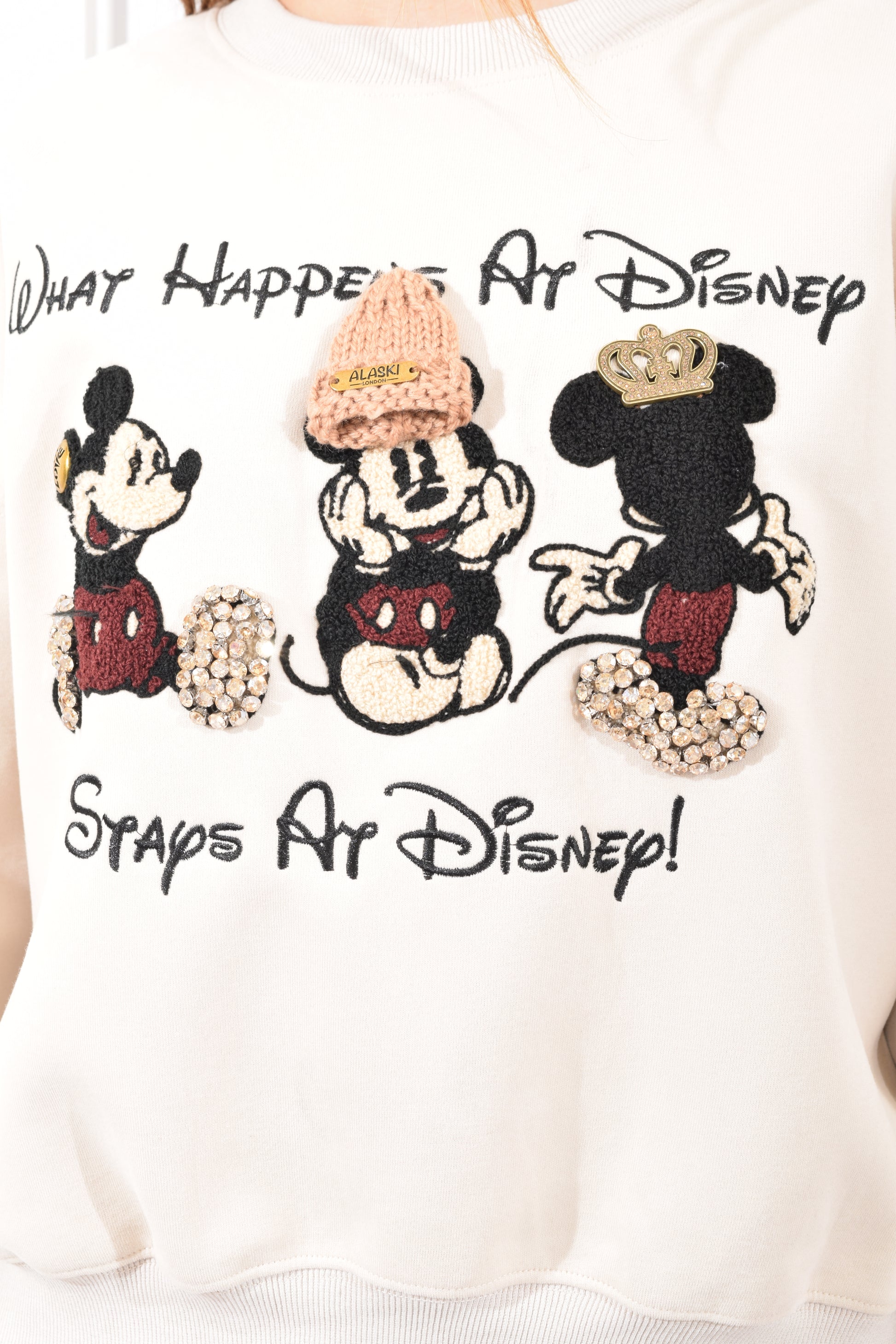 Sudaderqa beige, ratones con detalles, tela gruesa, suave con strech.